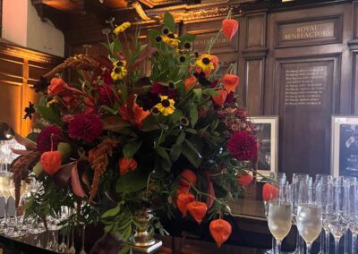 Guests were treated to delicious canapes and sparkling wine provided by Kent winery Gusbourne. Music was provided by DJs from local record shop New Forms. Autumnally floral displays and scented candles created a warm and inviting space.